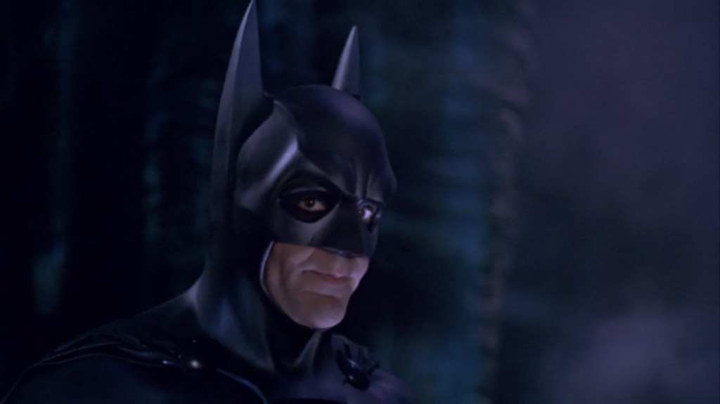 This exchange works on three levels: The line about “chicks” digging the car is a call back to a similar line in Batman Forever (1995); the tone of the exchange is playful like the rest of the movie; and it establishes an undercurrent in Batman and Robin’s partnership. This last part becomes very important for the story that follows.