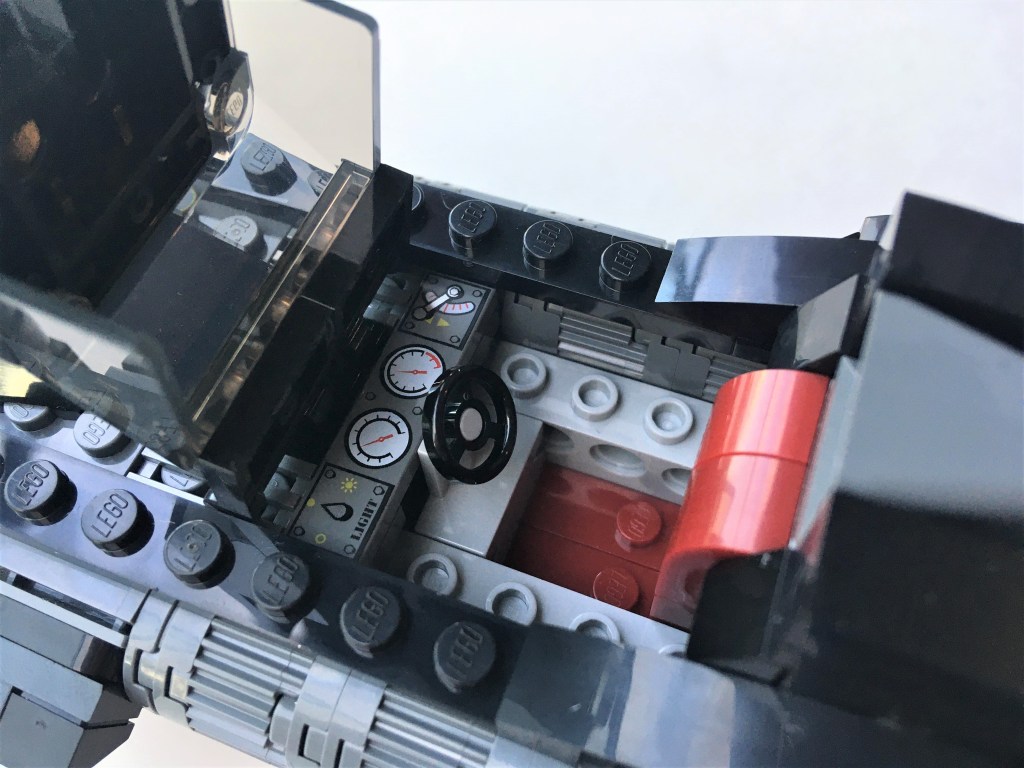 This Batmobile is suitable for one driver only (no room for a passenger I’m afraid), with the driver’s seat accessible from a canopy which tilts forward on a hinge. This is a neat touch which means minifigures can be placed in/taken out of the vehicle without any hassle.