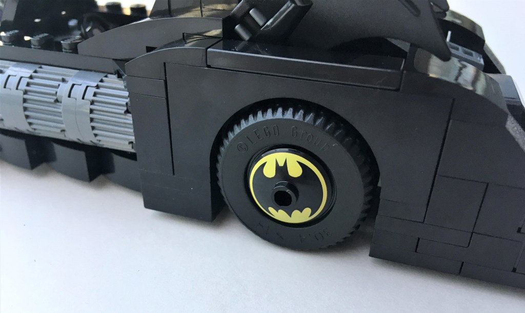 As mentioned above, this Batmobile takes a great deal of inspiration from previous Batmobiles and features a long chassis, two large (adjustable) fins and one of my favourite details – a rotating afterburner!