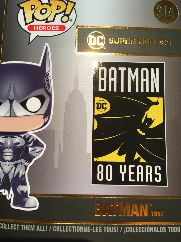 As with the other figures in this anniversary collection, the Clooney Batman comes in special edition packaging – a black box with gold foil lettering. This adds a premium feel to the item, even though it retails for the same price as a standard Funko Pop!.