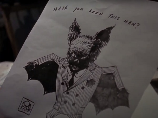 In the bottom corner of the sketch, the artist has signed his work with the name Bob Kane. It’s a brief nod, but it’s there, and it means the sketch artist (played by Denis Lill) is playing Bob Kane!