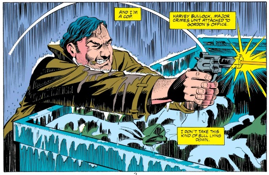 Published in 1992, in Detective Comics issue #651, A Bullet for Bullock is a standalone Batman tale written by Chuck Dixon, with art by Graham Nolan. Presented as a mystery/detective piece, the story focuses on Detective Harvey Bullock and the multiple attempts made on his life by an unknown assailant.