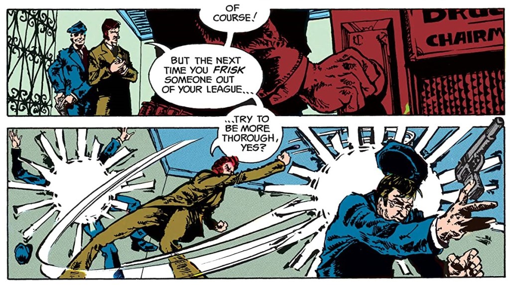 Running to a mere 12 pages, The Cape and Cowl Deathtrap is a short, yet brilliant story which is a joy to read. The plot is well-paced by Elliot S! Maggin, while Walter Simonson’s illustrations are superb.