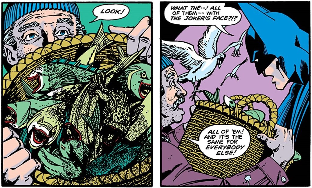 Local fishermen are discovering something unusual within their fishing nets. Each fish they snare bares the image of the Joker.