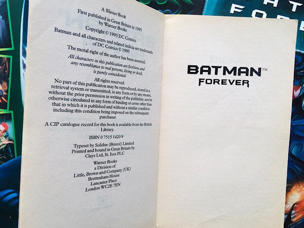 If you are a Batman fan, and you have watched Batman Forever but have never read the novelisation, then I recommend you give it a read. The novel is long out of print, but a second-hand copy can usually be found online quite cheap (just take a look on eBay).
