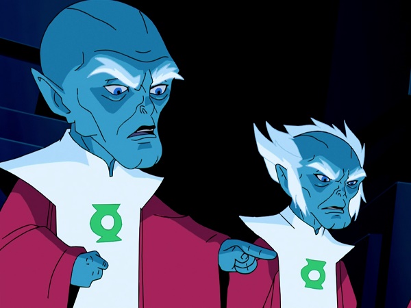 29mins – The Guardians (the head of the Green Lantern Corps) are reprimanding Sinestro for his interrogation methods. They believe his methods are too severe. Of course, they are correct, but they probably should do more than just give him a bit of a telling off. Maybe stop him from being one of your top-ranking members?!